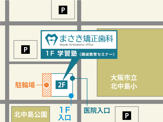 当院は徒歩、自転車、自動車でお越しいただきやすい場所にあります。お子さんの矯正治療は数回で終わるものではありません。装置を装着した後、定期的な通院が必要です。だからこそ、通院しやすい環境も大切です。